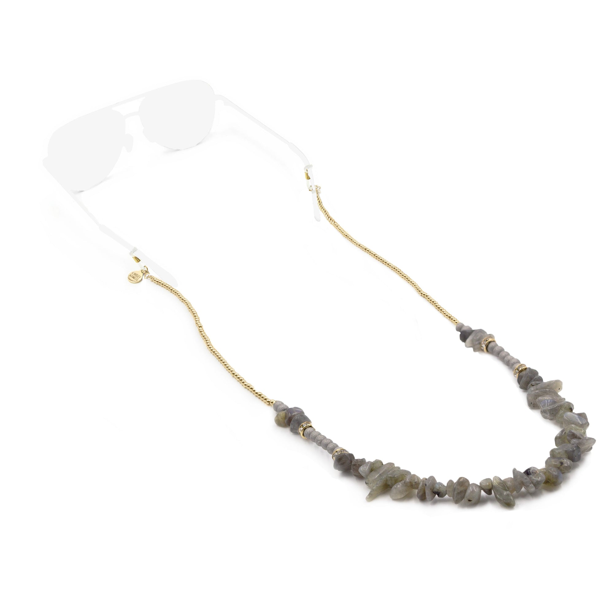 Gold And Green Beads Hypoallergenic Nickel Free Sunglasses Strap Accessory. Custom Decorative Accent Beads Accents And Designed With Love In Texas. Size 18 Inches Length With Custom Sizing Available On Select Pieces.